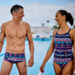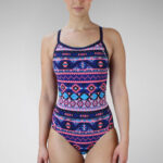 The Aztec print combines modern colors with a vibrant design for those looking to make a statement in the water. Made from our Xfinity fabric to ensure unrivaled swimming chlorine resistance,